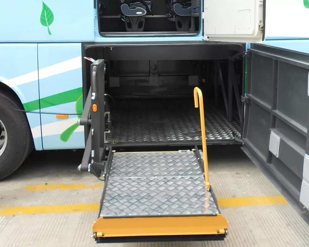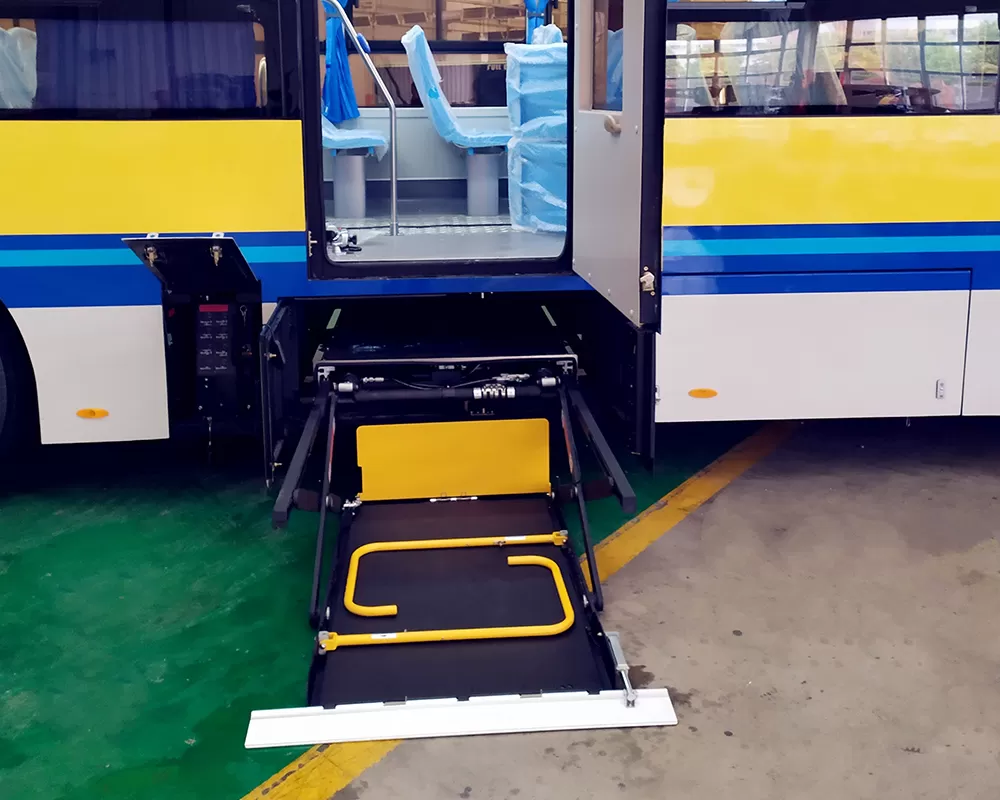 전기 및 유압 드라이브를 통해 플랫폼은 차량의 바닥과 같은 높이로 상승하여 휠체어가 원활하게 들어갈 수 있습니다.
