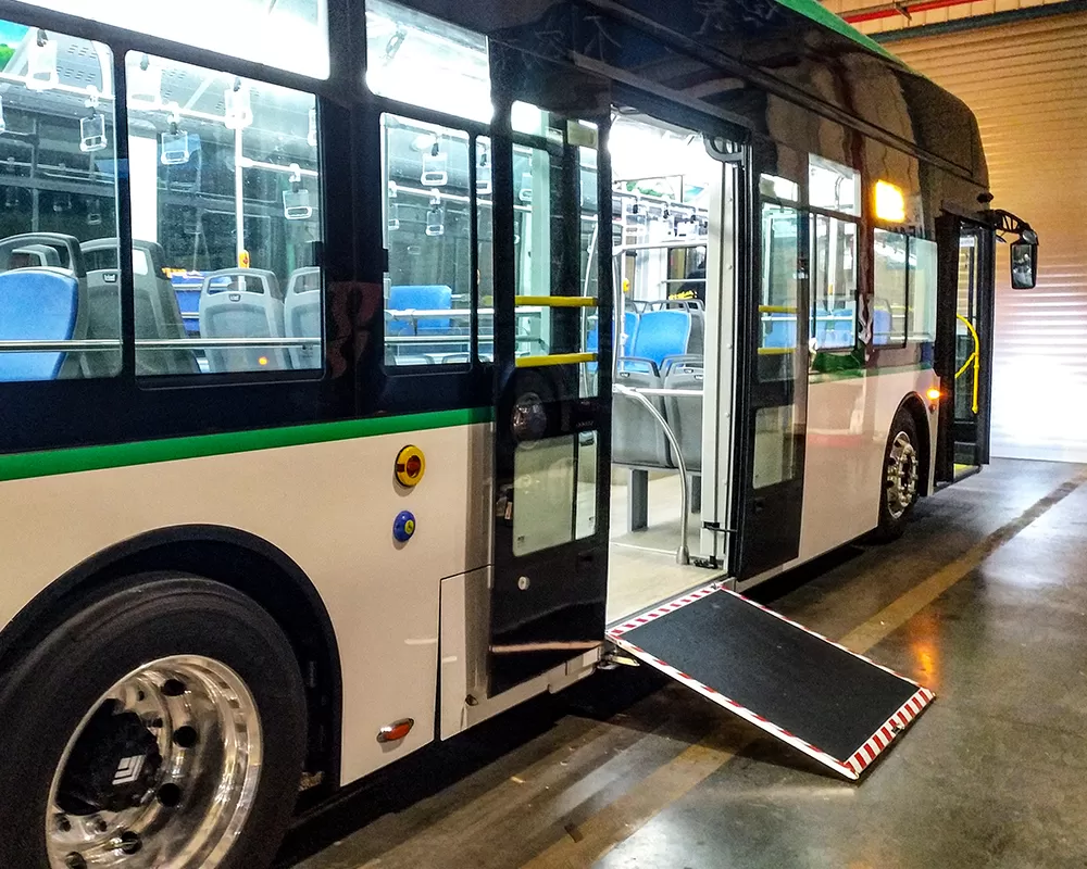 사용 과정:휠체어 사용자는 조수의 도움을 받아 경사로를 밀고, 구획에 들어간 후, 운전자 또는 조수는 휠체어를 정의 된 영역 (격실 내부의 휠체어 장착 장치 사용) 에 고정시킵니다.