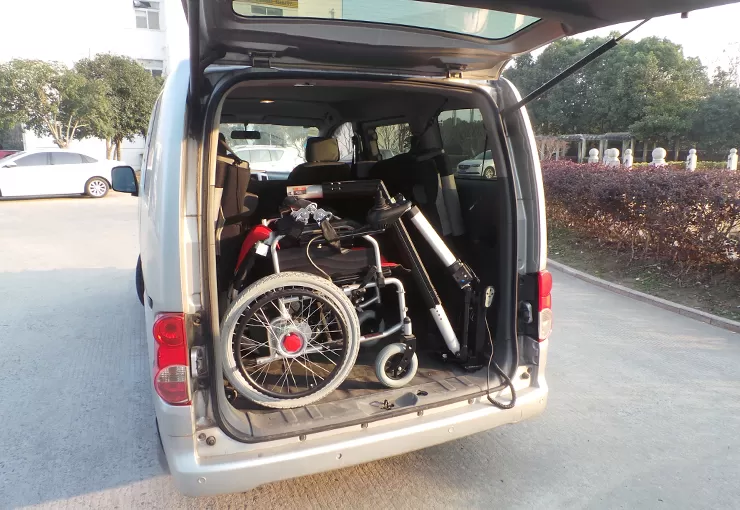 이 휠체어 호이스트는 전기 액추에이터에 의해 구동되며 최대 적재 용량은 100 kg에 도달 할 수 있습니다.